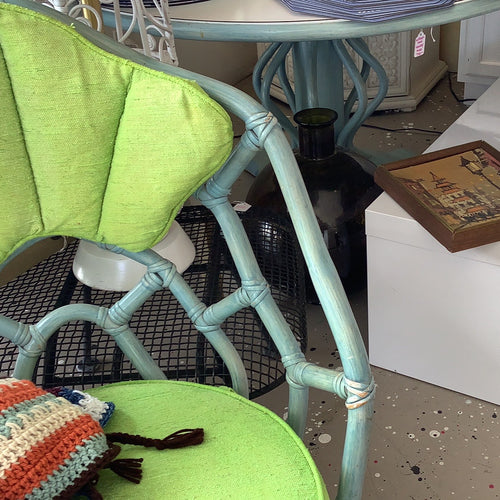 set of 4 swivel chairs and table with lime green upholstery HENRY OLKO