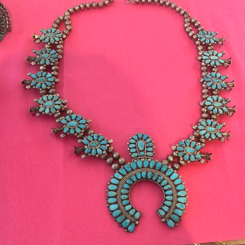 Zuni tuquoise cluster squash blossom necklace excellent stone![]()  - Regular price