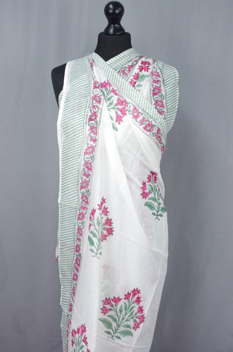 Beach Coverup Sarong Pareo - Pink Garden On White Base