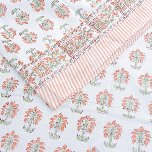 Block Printed Rectangular Tablecloth - Orange Palm Trees